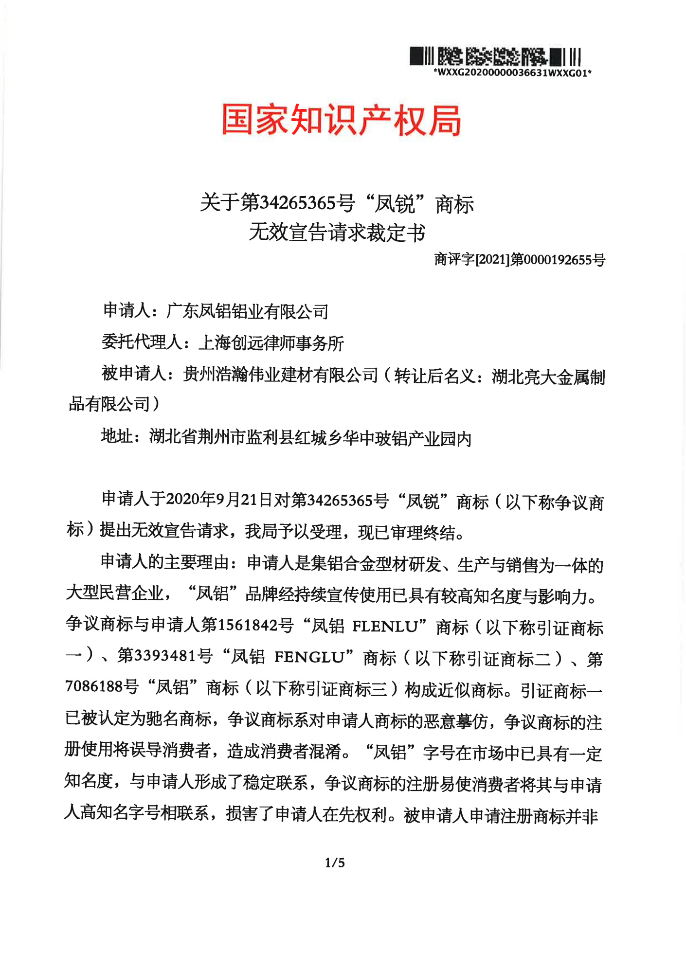 滨州辉知队 | 国家知识产权局:“凤锐”商标无效